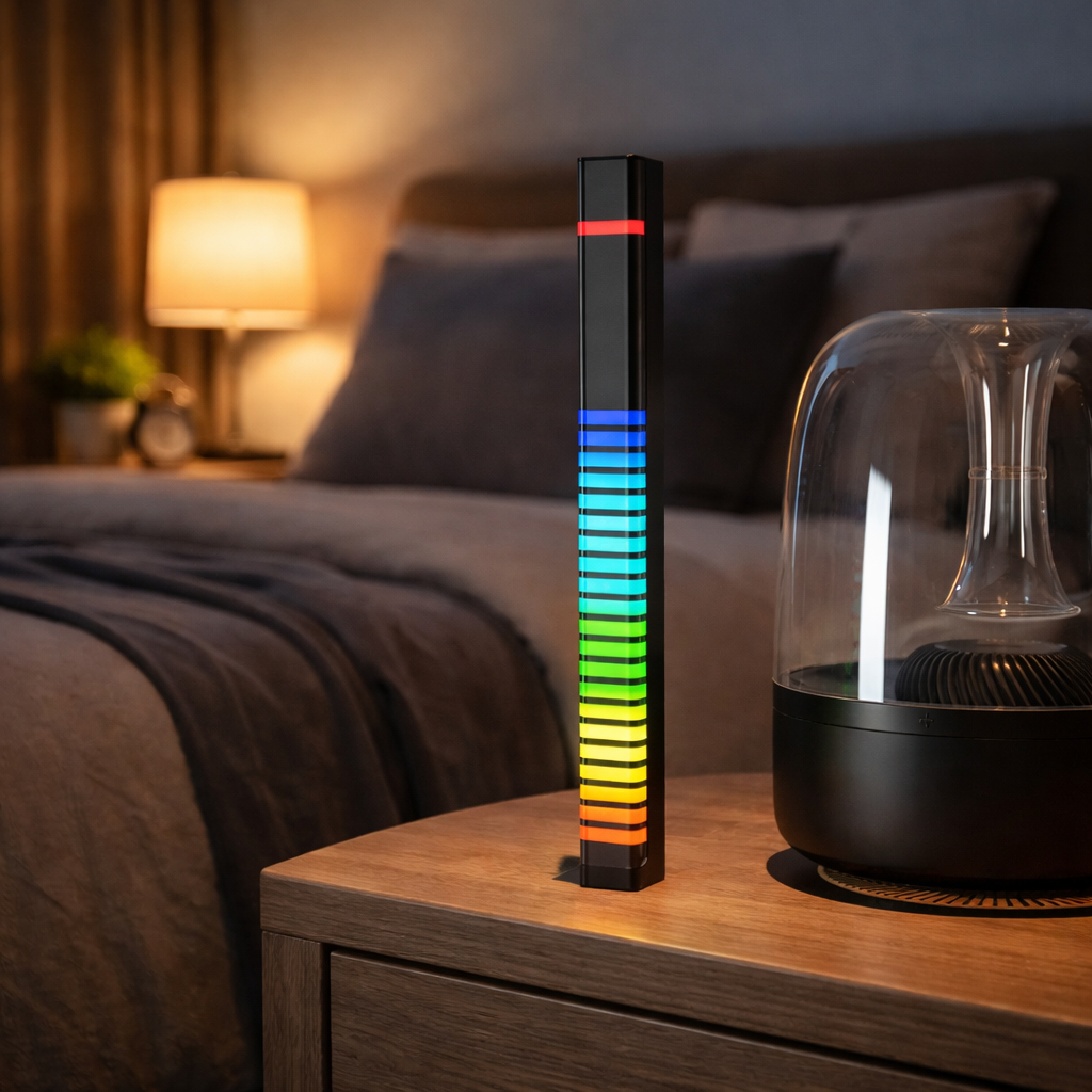 The built-in microphone detects external sound, synchronizes music frequency, and drives the RGB LEDs to produce real-time dynamic lighting effects — turning sound into stunning visuals instantly.