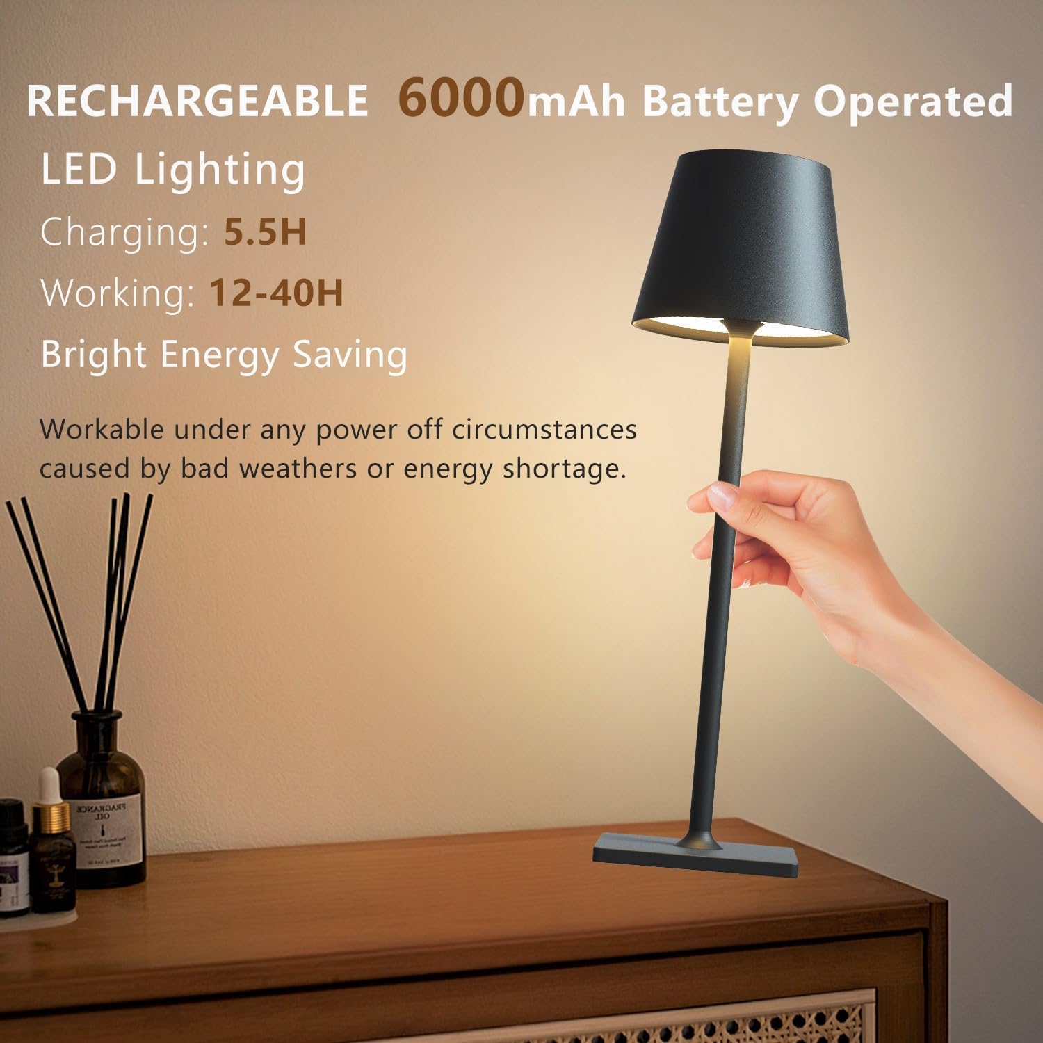 Upgrade your lighting experience with this Cordless Rechargeable Table Lamp, designed for modern homes, outdoor spaces, and versatile daily use. With a powerful 6000mAh built-in battery, this lamp delivers long-lasting illumination without the hassle of wires—perfect for both indoor and outdoor environments.